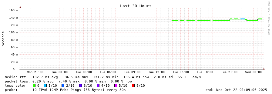 16 > 2a02:2f05:21ff:ff01::2 (2a02:2f05:21ff:ff01::2) [AS8708] 137.500ms 137.263ms 137.100ms