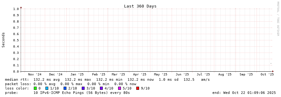 14 > 2a02:2f00:8708::e5 (2a02:2f00:8708::e5) [AS8708] 144.445ms 144.357ms 144.401ms