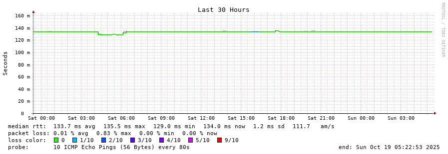 13 > 190.108.85.100 (190.108.85.100) [AS18678] 133.619ms 133.605ms 133.628ms